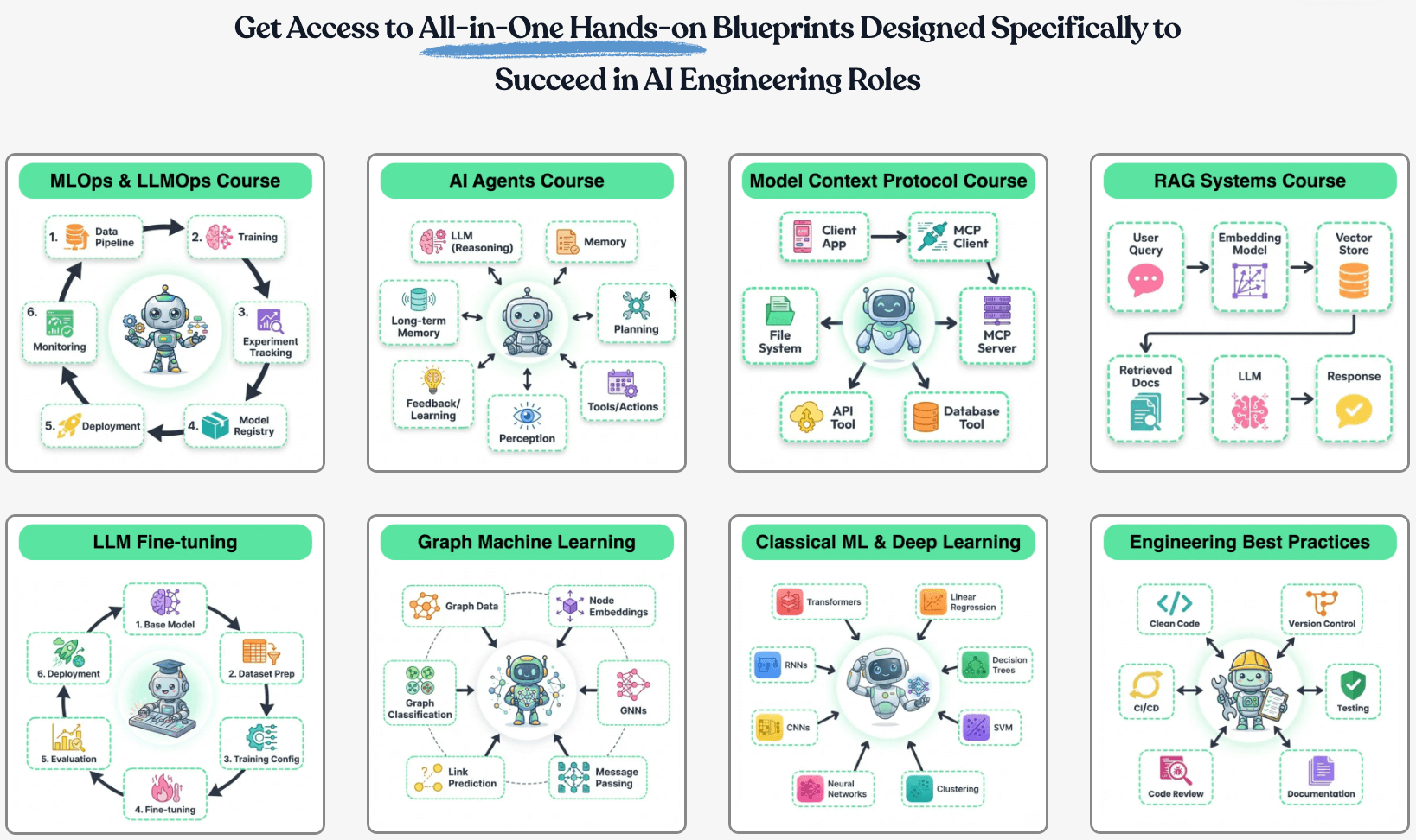Our four guidebooks (MCP, Agents, DS, and AI Engineering) were only accessible in PDF format so far, which made it difficult for us to update and re-distribute them to you.